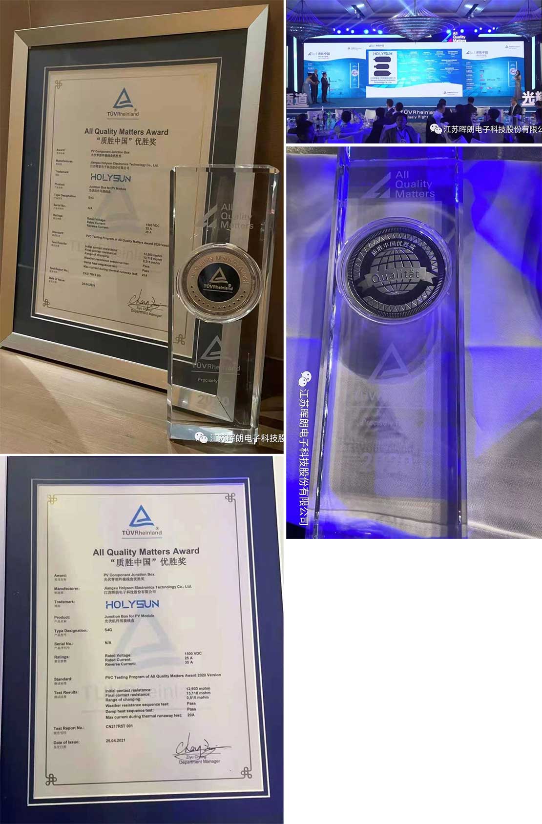 九游娱乐荣获年度TUV Rheiland质胜中国九游娱乐接线盒组唯一优胜奖!
